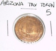 Arizona State TAX TOKEN 5 SALES TAX PAYMENT *RARE MS HIGH GRADE - NICE TOKEN*!! ***Coin, Currency & All Items Listed in this auction - Grades, Conditions and Values are not Safe Deposit Coins LLC Responsibilty. Grades, Condition and Values are determined by Consigner(s) & Buyers ONLY***