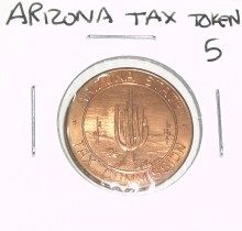 Arizona State TAX TOKEN 5 SALES TAX PAYMENT *RARE MS HIGH GRADE - NICE TOKEN*!! ***Coin, Currency & All Items Listed in this auction - Grades, Conditions and Values are not Safe Deposit Coins LLC Responsibilty. Grades, Condition and Values are determined by Consigner(s) & Buyers ONLY***
