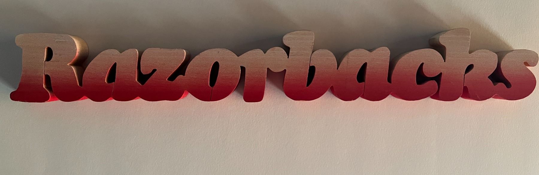 Arkansas Razorbacks wood block sign. 2x14 inches