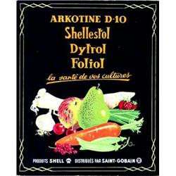 Arkotine D-10, shellestol, dytrol, foliol. La sante de vos cultures. Produits Shell. Distribues par Saint-Gobain. Carton publicitaire / Advertising cardboard B.E. B + 200/380 € 36 x 30 cm 150/2490 FF 20/320 $ AGRICOLES / AGRICULTURAL
