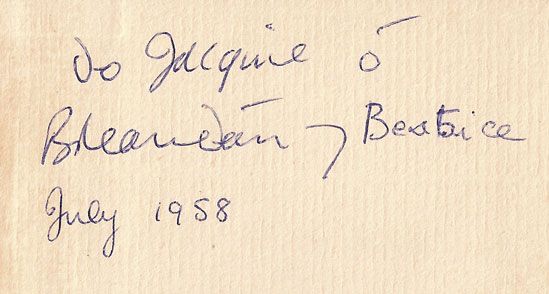 Original boards, pp61The Dolmen Press, Dublin, 1957. With dedication from and in the hand of Brendan Behan "Do Jacquie o Breandan & Beatrice July 1958"