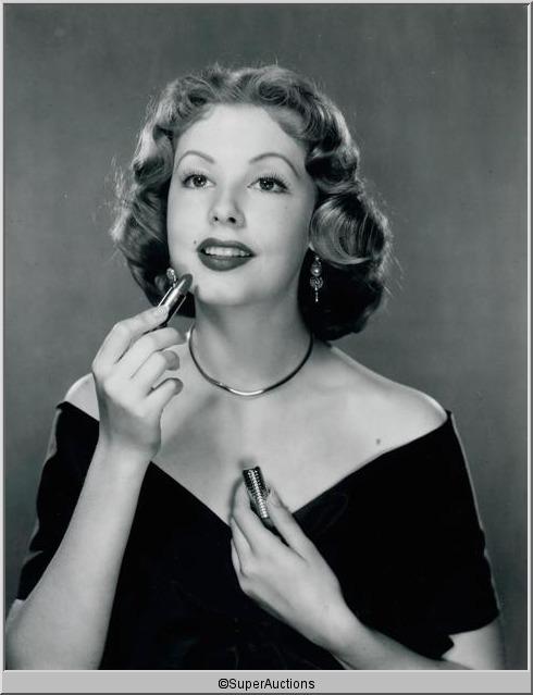 Arlene Dahl from The Max Factor Collection / (1) 8 x 10 Negative of Arlene Dahl Posing with Lipstick Make-Up / (1) 8 x 10 Black & White Photograph of Arlene Dahl Posing with Lipstick Make-Up