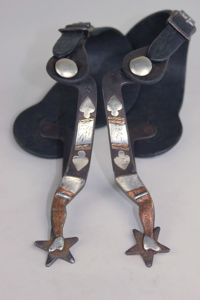 An incredible pair of gal leg spurs with the legs rounded on one side and flat on the other, both well marked with the arm and hammer. Almost non-existent.