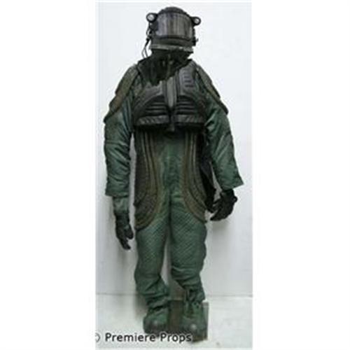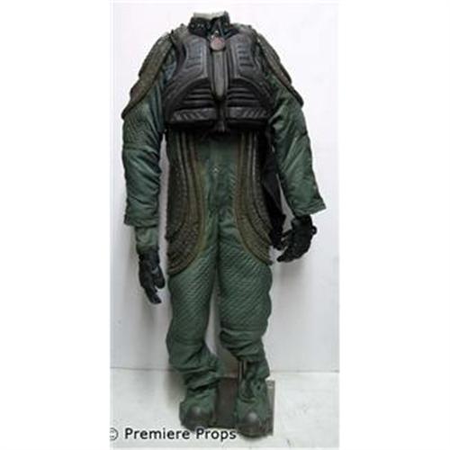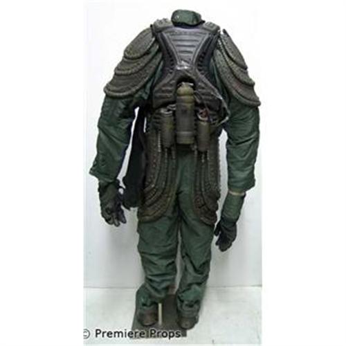 ARMAGEDDON - It's Closer Than You Think. From the set of the apocalyptic thriller, this is Bear's (Michael Clarke Duncan) screenworn space suit life support pack. This pack weighs 30 lbs and the toggle switch on the back side operates a working fan. This item has been aged and used. The vest is deeply cracked in a few places. The boots and gloves can be detached from the costume and the headpiece does not attach to the body.