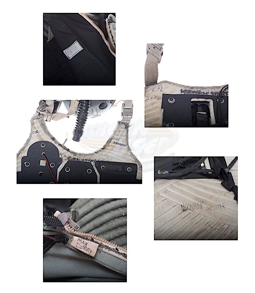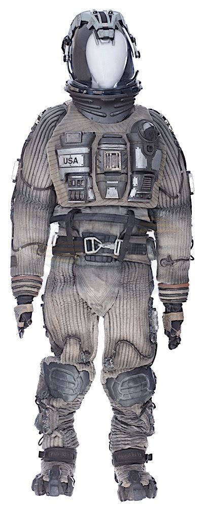 (Touchstone Pictures, 1998). This spacesuit was custom-made by the production for use by various actors during filming. The iconic suit is comprised of a mixture of a couple of characters and consists of an impressive replica helmet with working interior lights that are powered by a small cable that plugs into a standard 110 outlet plug. A bodysuit top that is marked "Bear" for use by Michael Clarke Duncan, a pair of body suit pants that are unmarked, a stunt chest and back pack that are marked "Noonan" with other markings that are crossed out, a stunt belt with stunt pack batteries attached that is marked "Noonan" a pair of size 10 boots and a pair of gloves that are marked "Noonan Stunt". The spacesuit is distressed for filming and has wear from use and storage and the gloves have hardened and cracked at the fingers from age. The helmet was recreated for the display and has an original production neck ring, however the rest of the helmet is made of replica parts.
