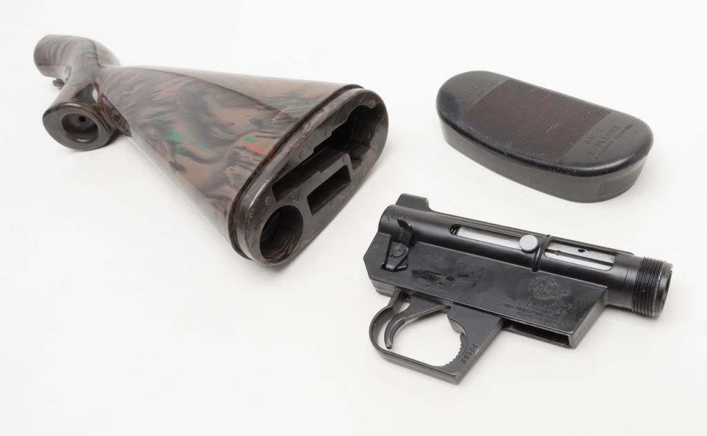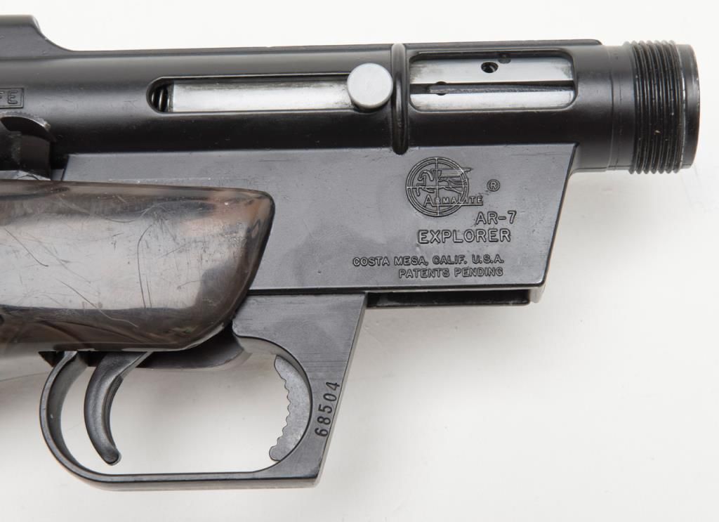 Armalite AR-7 Explorer partial semi-auto takedown rifle; .22 caliber, #68504; MUST BE REGISTERED; RECEIVER AND PLASTIC STOCK ONLY; MISSING BARREL AND MAGAZINE; a favorite for campers, boaters and backpackers. (Modern/PPT). Est.: $100-$150.