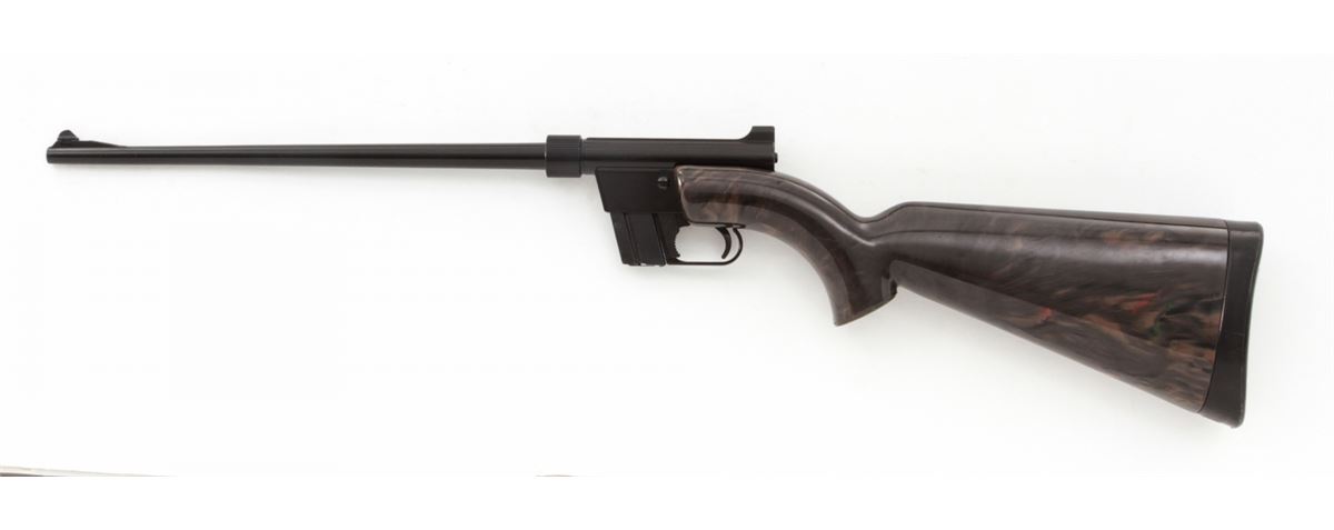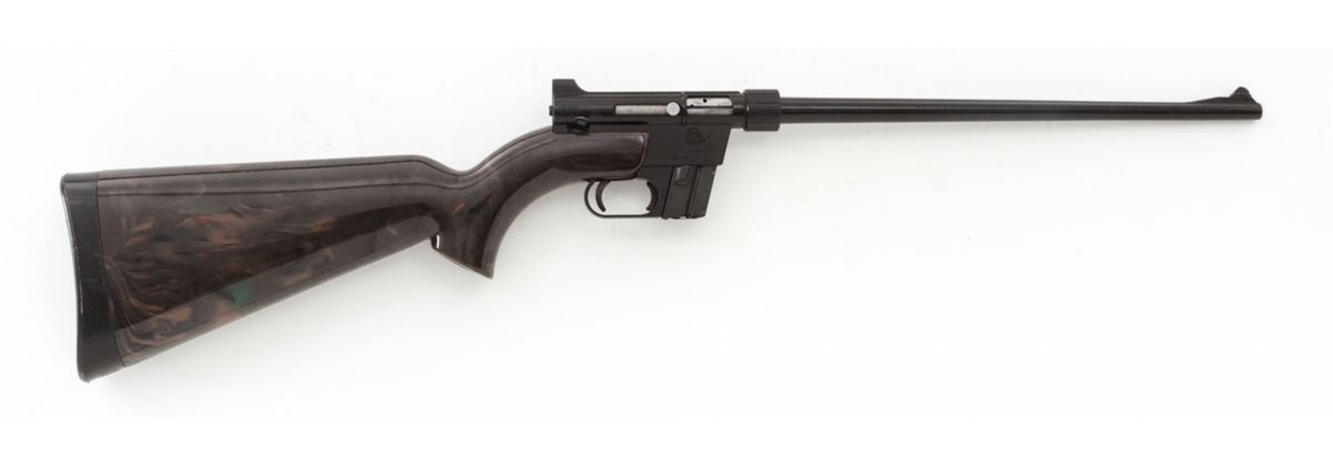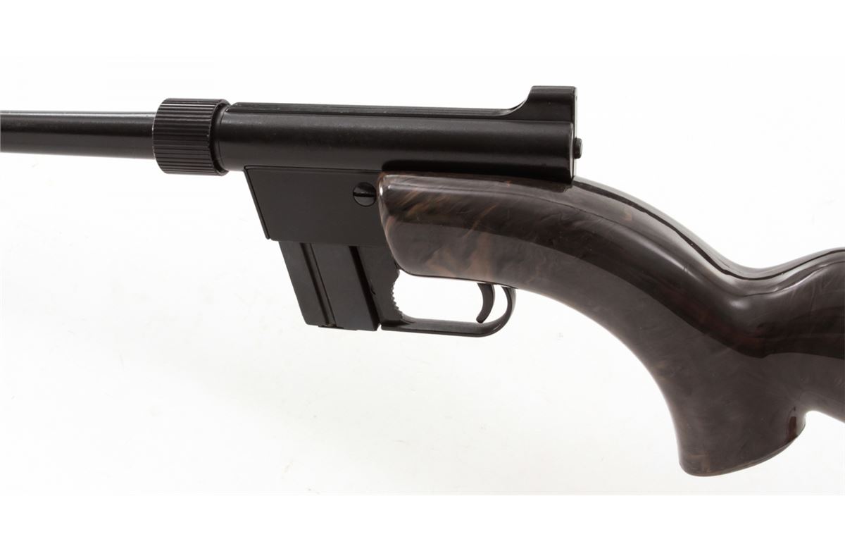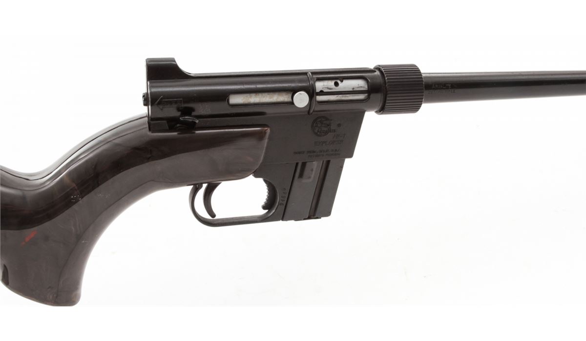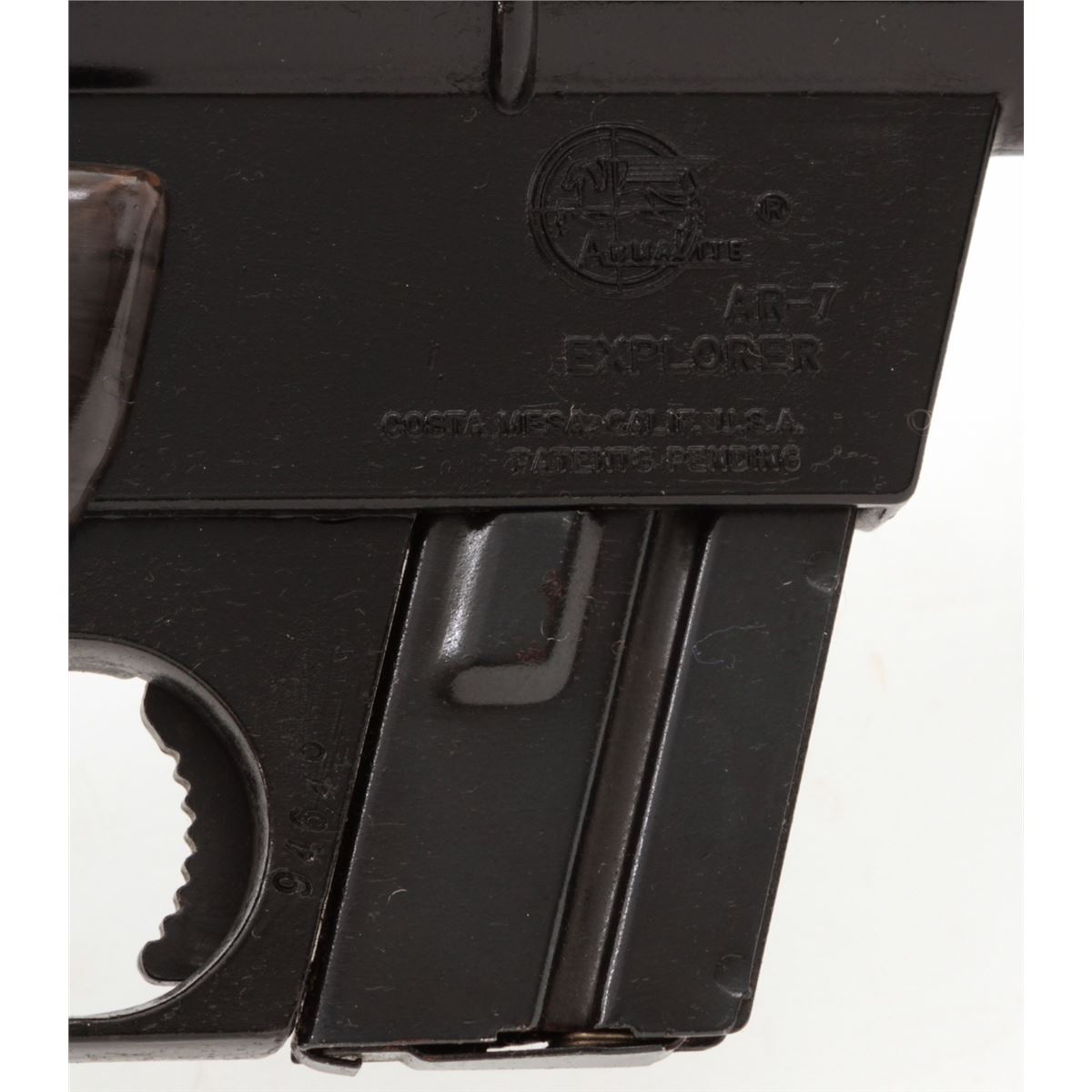 Armalite AR-7 Explorer Semi-Automatic Rifle, #94646, .22 LR cal., 16'' barrel, matte finish, marbled brown stock. Condition is fine. Metal surfaces show light wear. Stock with minor scuffs. Good action, bright bore. Est.: $300-$500. (C&R)