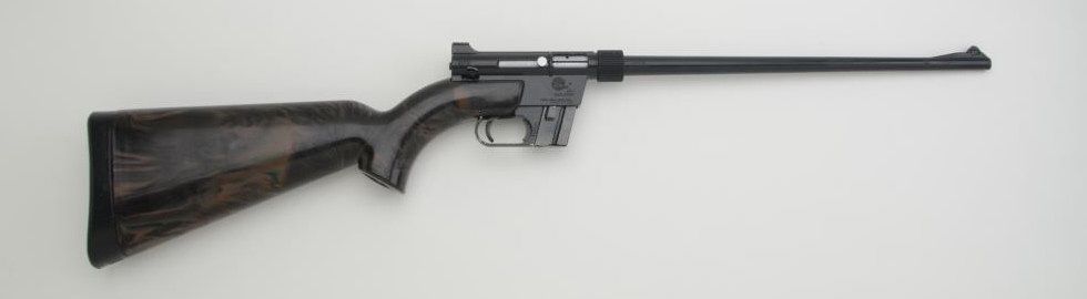 Armalite Model AR-7 Explorer semi-auto rifle, .22LR cal., 16” barrel, stored in buoyant butt stock, #110827. This great camping or boating gun is in overall very good condition showing the majority of its blue finish,good bore, action, markings and stock. Est.: $150-$300.