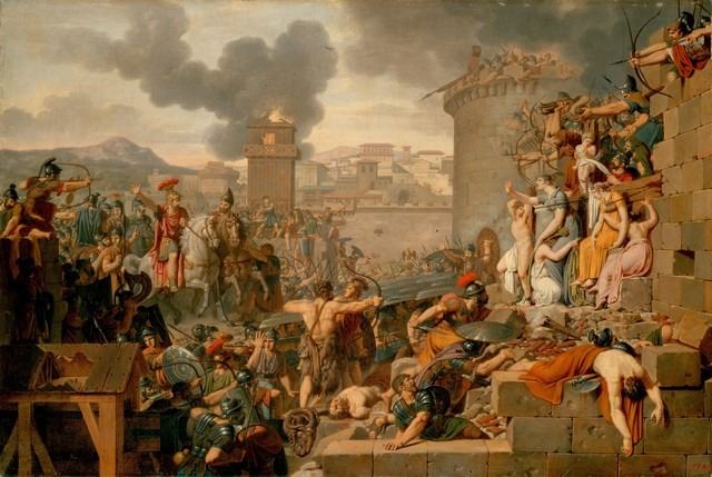 Artist: Armand-Charles Caraffe - Title: Metellus Raising the Siege - Medium: Fine Art Reproduction Giclee on Canvas - Image Size: Approximately 21.5 inches x 32 inches - Unframed on Unstretched Canvas - Biography: Caraffe was born in Paris in 1762. He was a pupil of Lagrenee and David. He visited Rome, and then travelled in Turkey, but returned to France at the outbreak of the Revolution becoming so active a member of the Jacobin Club that he was imprisoned from 1794 to 1797. In 1799 he exhibited 1799 a picture of Hope supporting Misfortune to the Grave, which was much praised, and in the following year one of Love, abandoned by Youth and the Graces, consoling himself on the bosom of Friendship, which was purchased by the wife of the First Consul. In 1802 he left France for an appointment at the Court of St. Petersburg, where he remained until 1812, and painted The Oath of the Horatii for Prince Yusupov. He eventually returned to Paris, where he died on 18 August 1822.