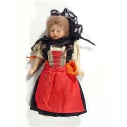 Armand Marseille bisque headed doll with open eyes and mouth in costume, impressed marks A and 130 to base, 20cm high
