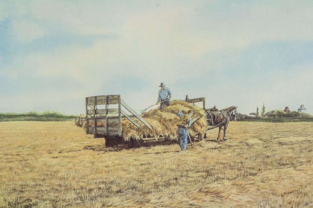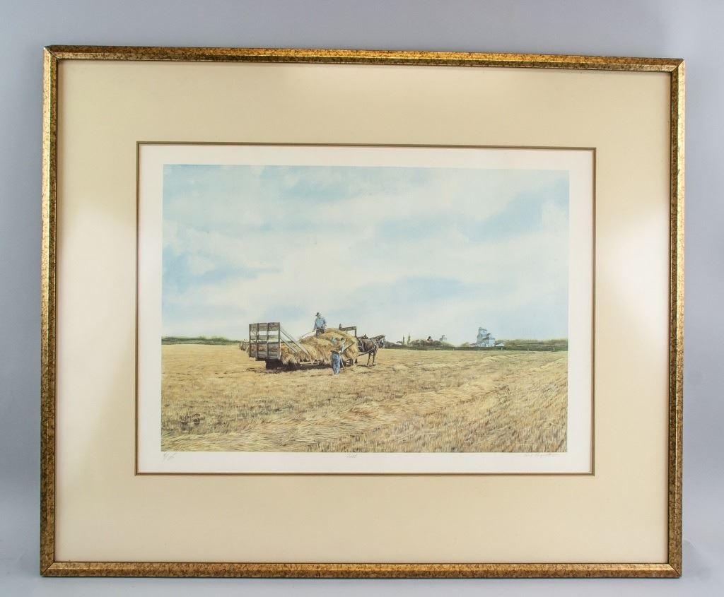 Lithograph. Featuring Canadian fields of grain and entitled 'fall.' Signed by Armand Paquette on lower right corner with series number 71/275. Armand Paquette was born in 1930 and grew up in Winnipeg's historical North End. His portraits of western Canadian life have earned him a loyal following among collectors. Always a keen observer of life around him, he finds inspiration in his recollections of the ordinary people and places of his experience. These people and everyday occurrences find their way into his paintings today. The heartwarming quality of his paintings is also present in his bronze sculptures. Paquette's three dimensional work is an extension of his painting, as if the figures have stepped from the canvas. PROVENANCE: Private American collection (New York, United States).