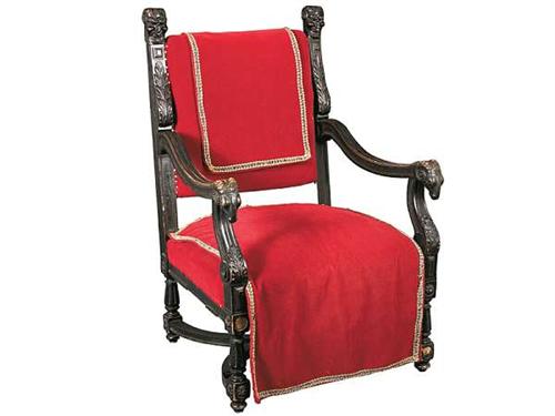 Lime-wood, carved decoration, claret colour plush upholstery. Neo-renaissance, late 19th century. Size: 103x70x64 cm.