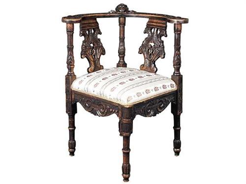 Lime-wood, carved decoration, green striped upholstery, restored. Eclectic, late 19th century. Size: 85x70x70 cm