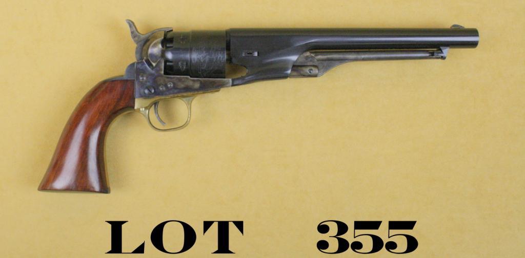 Armi San Marco Italian-made reproduction of a Colt Model 1860 Army percussion revolver, .44 cal., 8” barrel, blue and case hardened finish, wood grips, #B92169. This gun is in overall excellent condition showing littlehandling or use; accompanied by factory two-piece cardboard boxes and foam insert. Est.: $150-$300.
