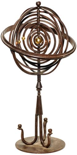 Armillary Sphere, c. 1920 Model of the celestial sphere with the sun placed in the center, brass planets on iron rings, Ø 105/8 in., height: 20 in. - Very interesting!<Br>