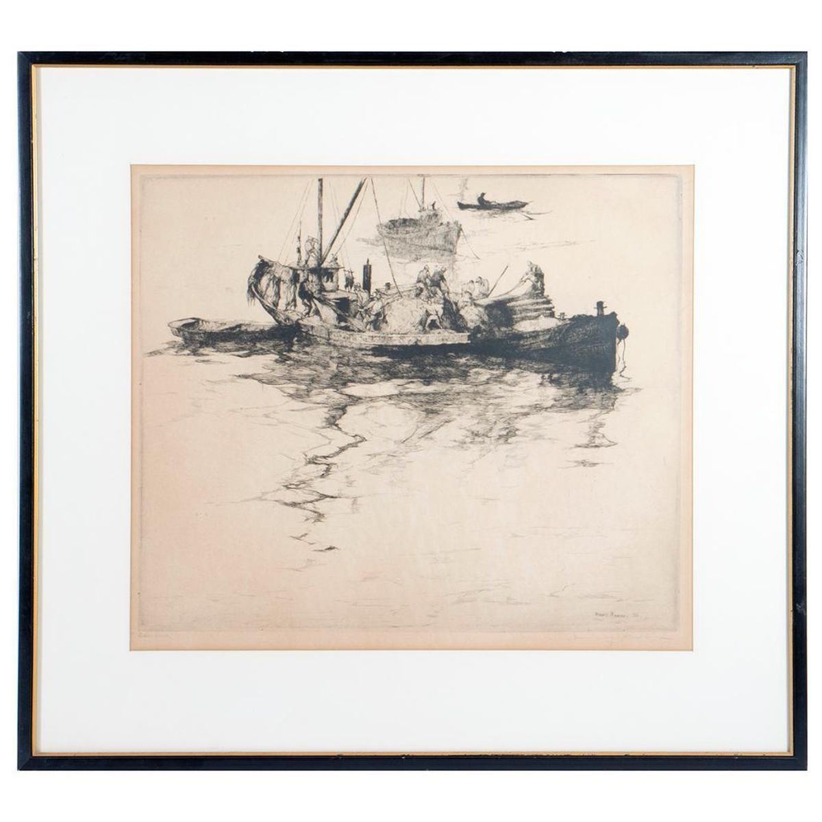 Artist: Armin Carl Hansen (1886 - 1957). Title: Lampara. Signature: Lower right. Size: 13 1/8" x 15 5/8". Medium: Etching.