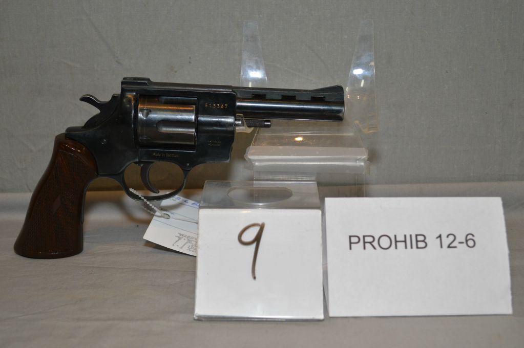 Arminius Model HW 38 .38 Spec cal 6 Shot Revolver w/ 102 mm vent rib bbl [ blue finish, fixed sights, starting to fade & show some holster wear, also worn by front grip strap, checkered brown plastic grips ] Ser # 513367 12-6 Prohib Cert # TCI