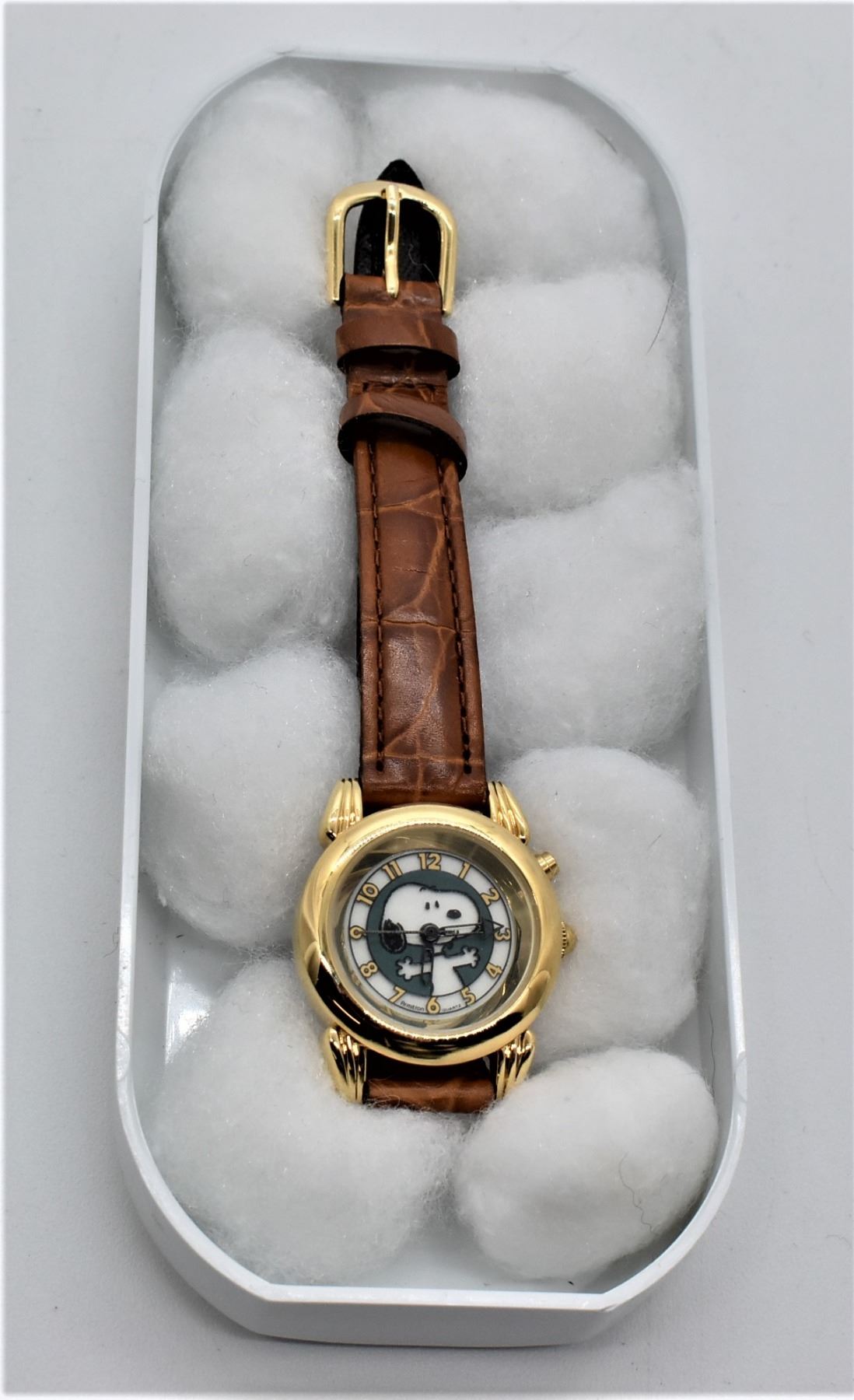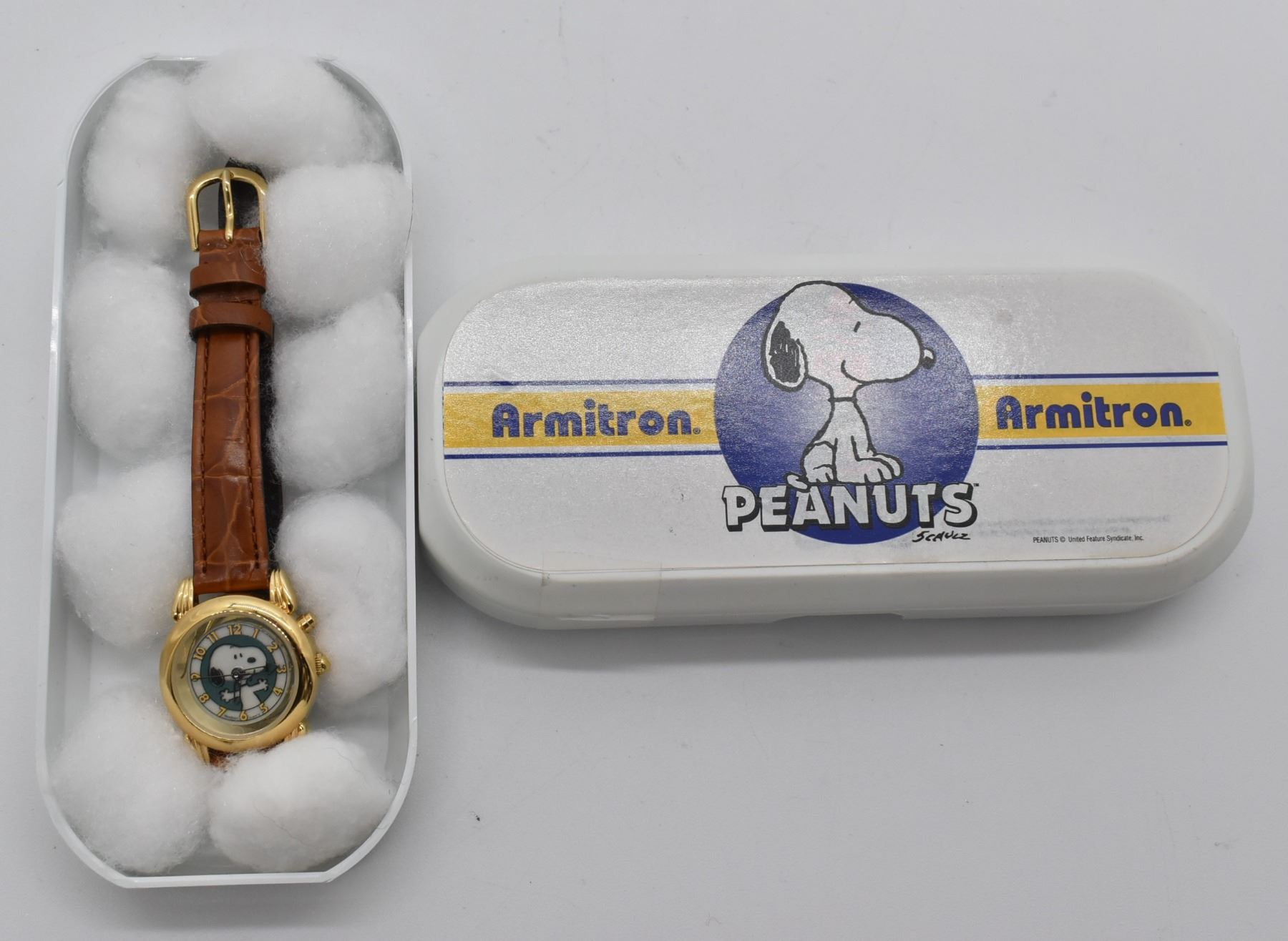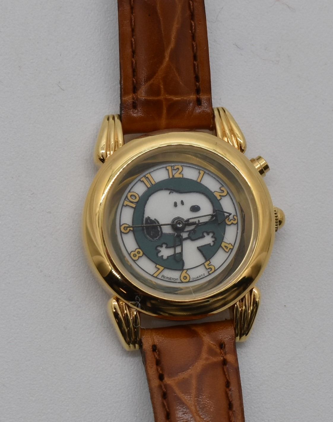 Armitron ''Peanuts'' Wristwatch, classic collectible, the ''Peanuts'' wristwatch by Armitron, faux alligator brown leather band, original marchandising box and warranty information