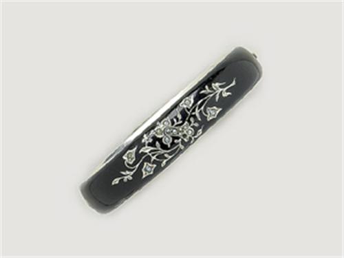 Silver, detachable anaglyp armlet, black enamel decoration, at the middle part foliation and tiny half pearls, circa 1900, marked, weight: 26.7 g, damaged enamel.