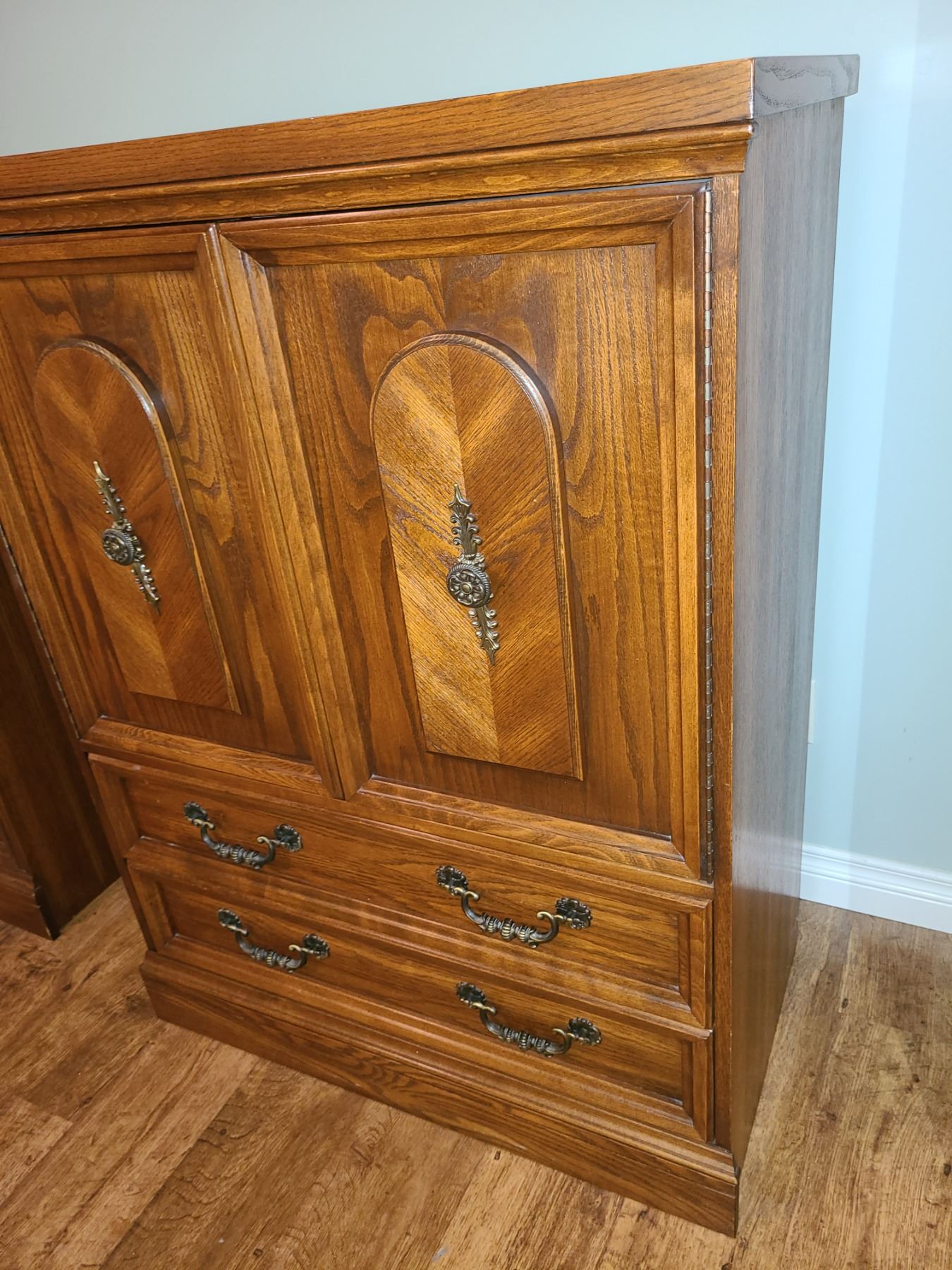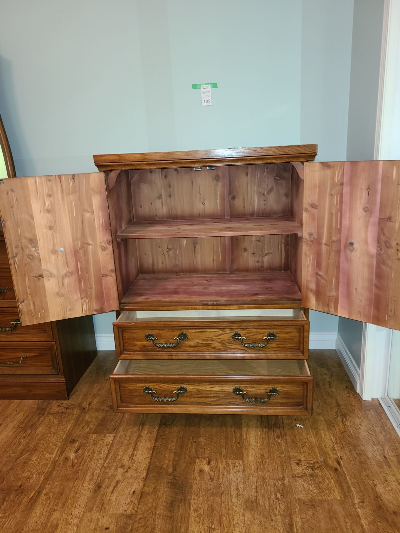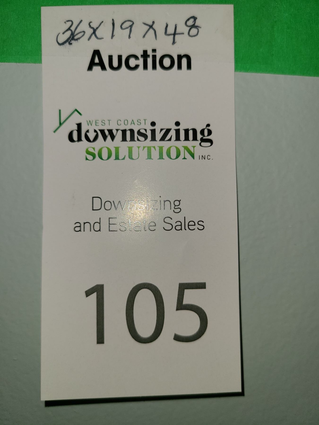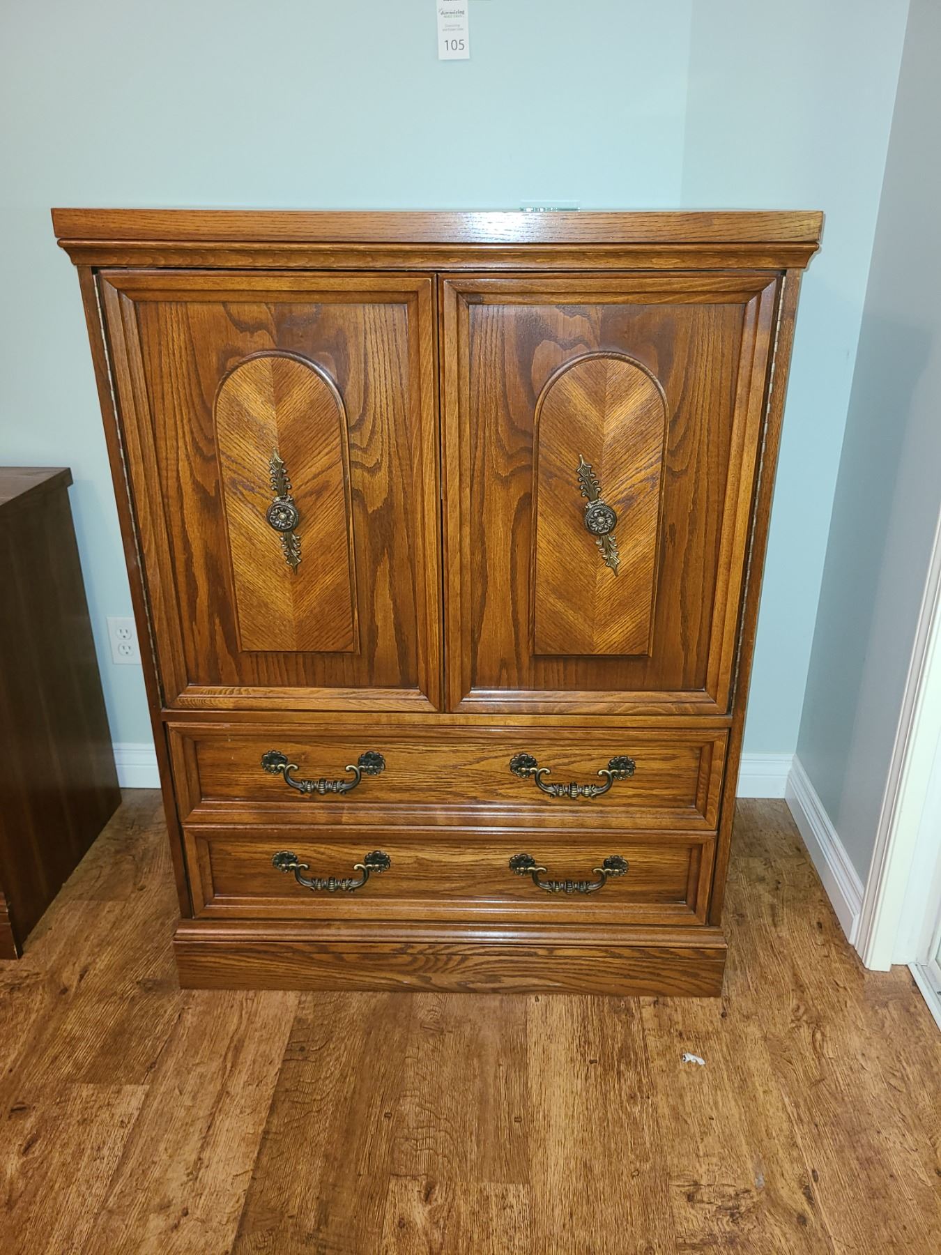 Armoire 36x19x48 matches lot 104. Heavy, bring help to move. Pickup at 11 am.