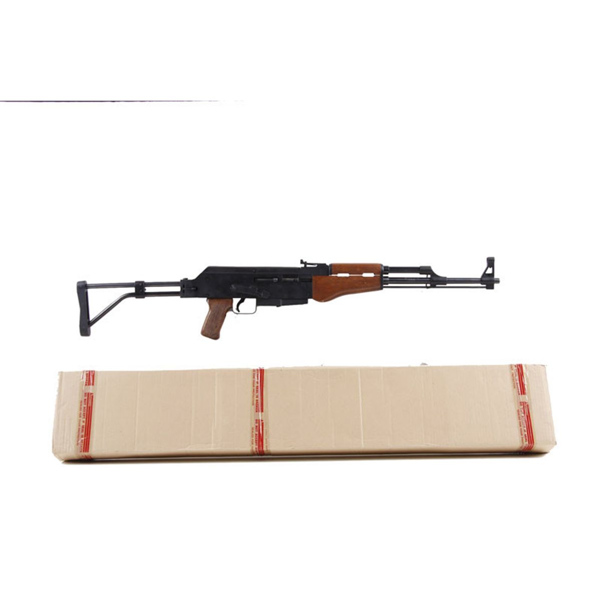 Arms Corp, Philippines AK47/22 Cal .22LR SN:AP201149, Neat high quality semi-auto rifle patterned after the AK47 and chambered for .22LR. Blued finish, Steel rod folding stock with steel butt plate, grooved wood pistol grip, smooth wood forearm and handSN:AP201149, Neat high quality semi-auto rifle patterned after the AK47 and chambered for .22LR. Blued finish, Steel rod folding stock with steel butt plate, grooved wood pistol grip, smooth wood forearm and handguard, 18" barrel with military style sights, good bore and action. Includes original box, manual, and strap. Condition: Near new with no sign of use. No magazine.'NOT CALIFORNIA LEGAL"