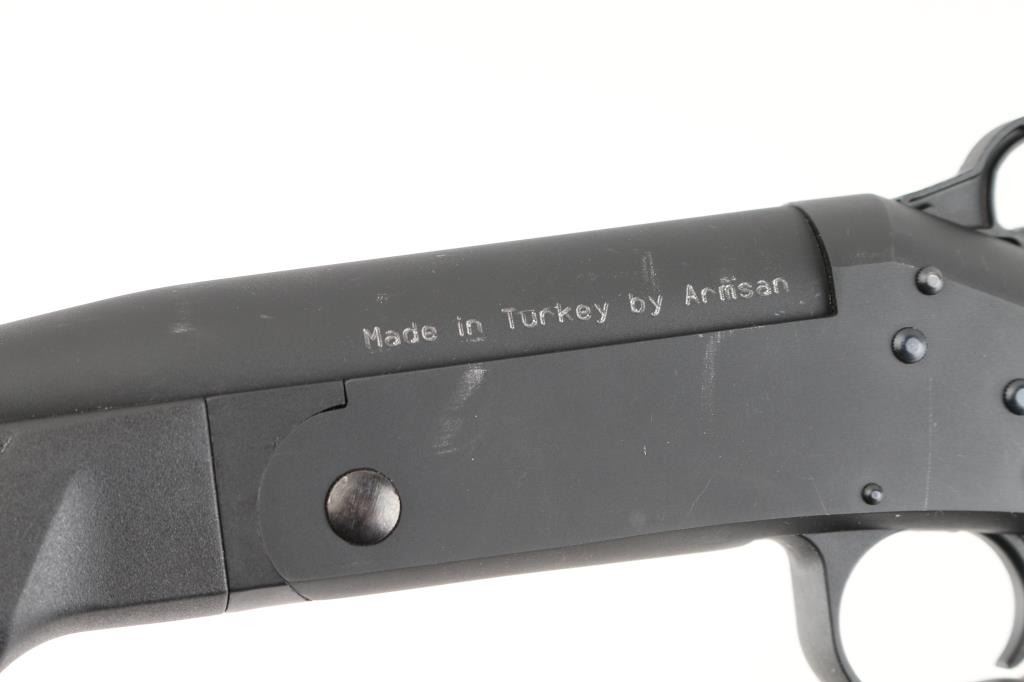 Made in Turkey by Armsan and imported by Legacy Sports Reno, NV. This is a single barrel break action shotgun chambered in .410 Ga. for 2 3/4" and 3" shells. 26" barrel with bead front sight, black polymer textured fore-end and grip on stock, manual safety and breech lock on right side of frame. Bore is excellent. Condition is NRA Excellent. Modern Firearm.
