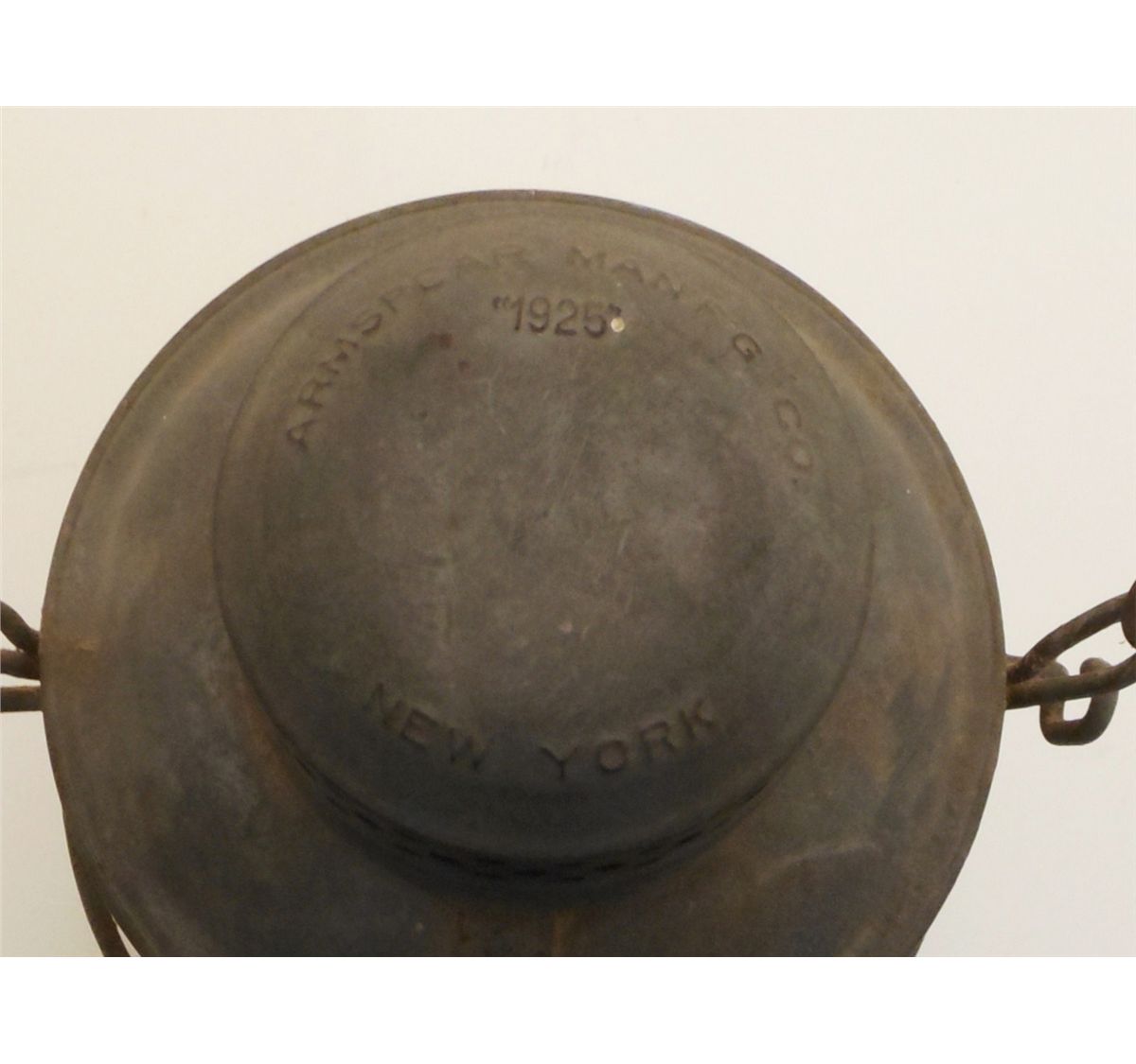 In its original design, Armspear's "1925" model had flat verticals and a distinctive profile. After the early 1930's, this model retained the Armspear name but was manufactured under contract by Adams & Westlake. Its appearance then was similar to A&W's "Kero" model. Lantern in good condition, intact lens is marked Adlake Kero.