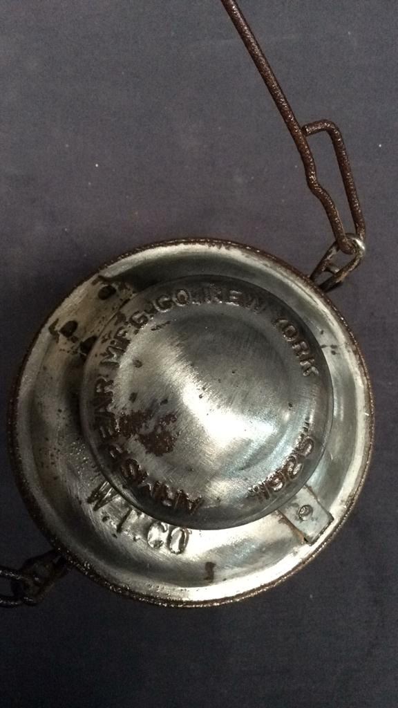 Armspear Mfg Co. 1925 Railroad Lantern Marked W. T. Co. Red globe