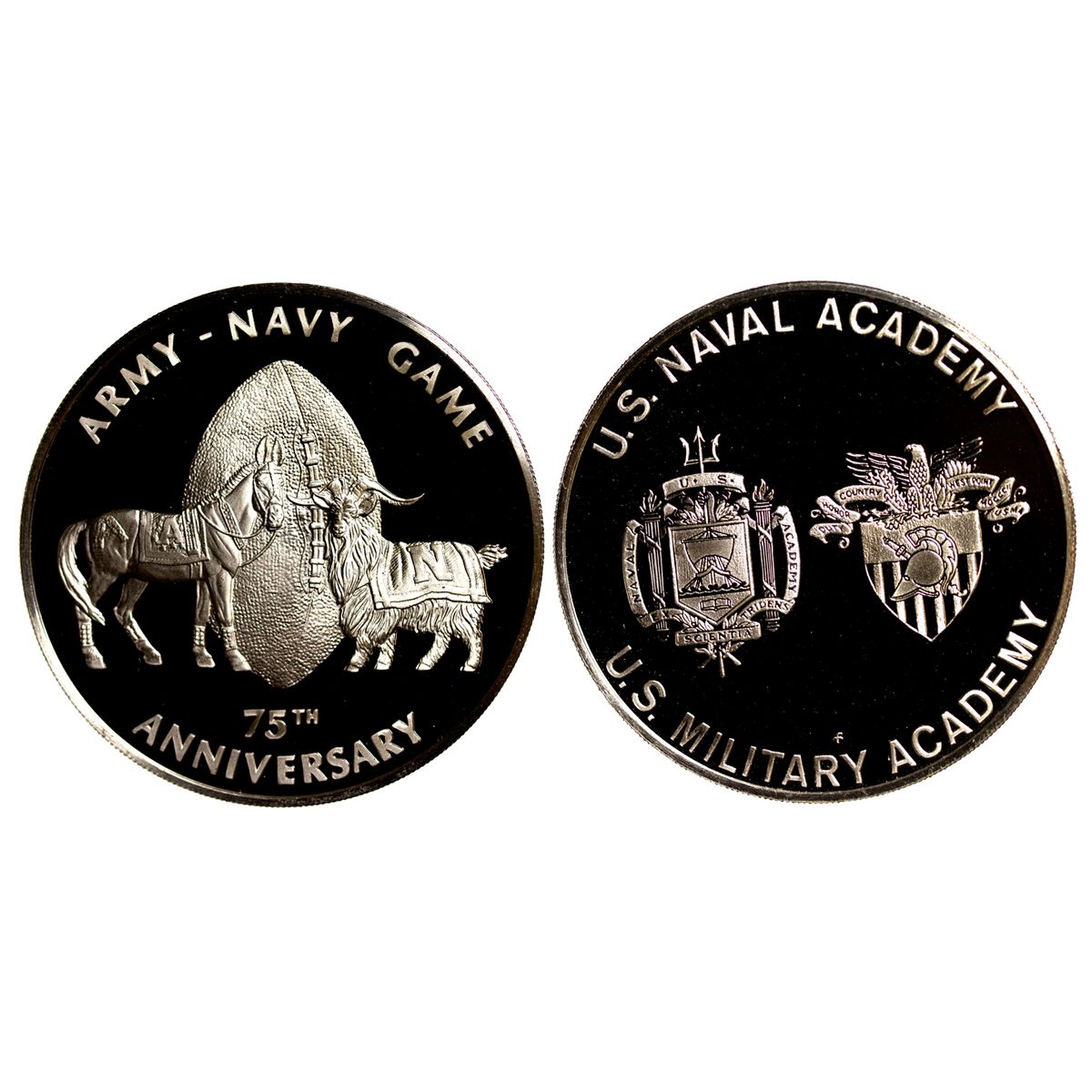 39mm, reeded edge proof sterling medal commemorating the 75th Army/Navy game. - Weber Collection