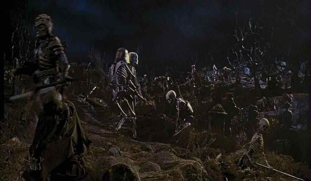 Original deadite skeleton used in the dark fantasy comedy horror film 'Army of Darkness' (1992), where, a man is accidentally transported to 1300 A.D., where he must battle an army of the dead and retrieve the Necronomicon so he can return home.