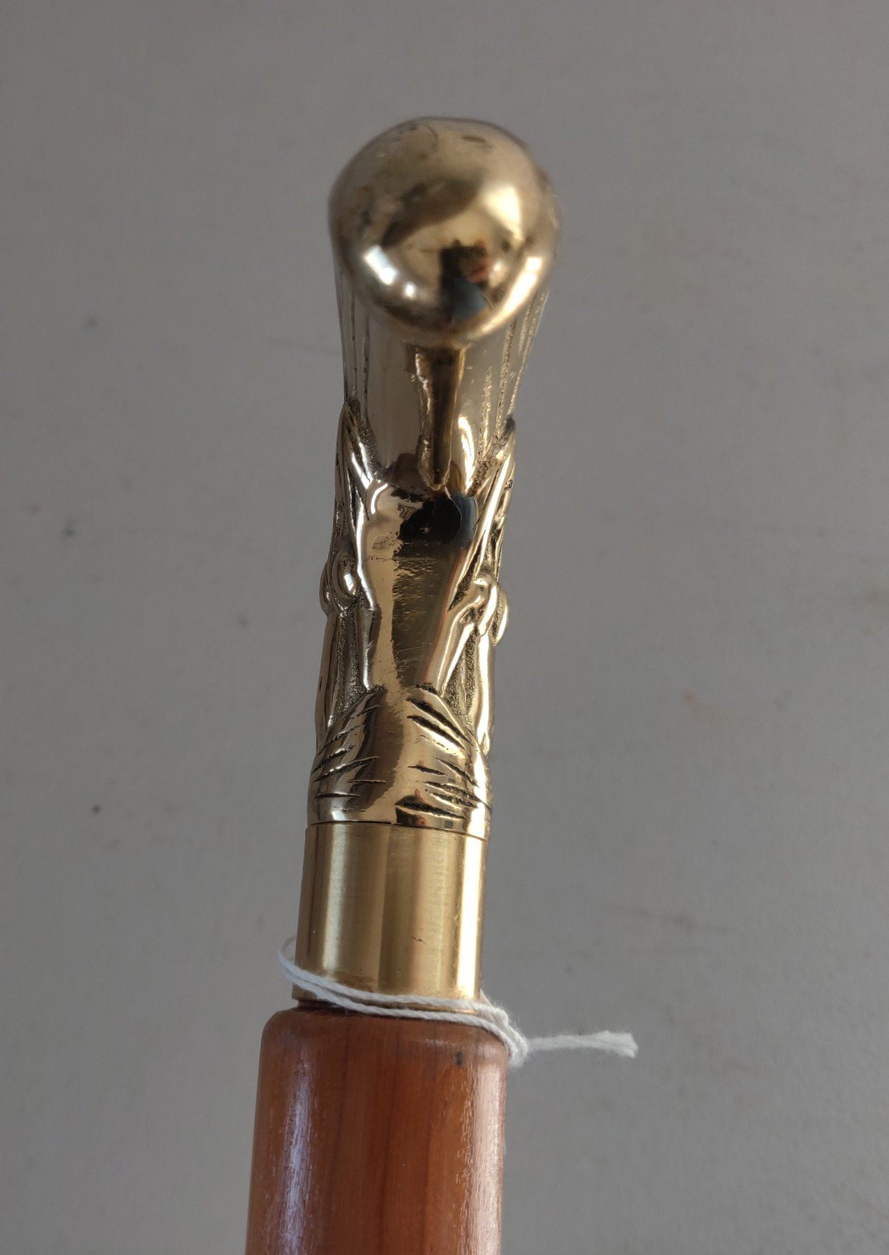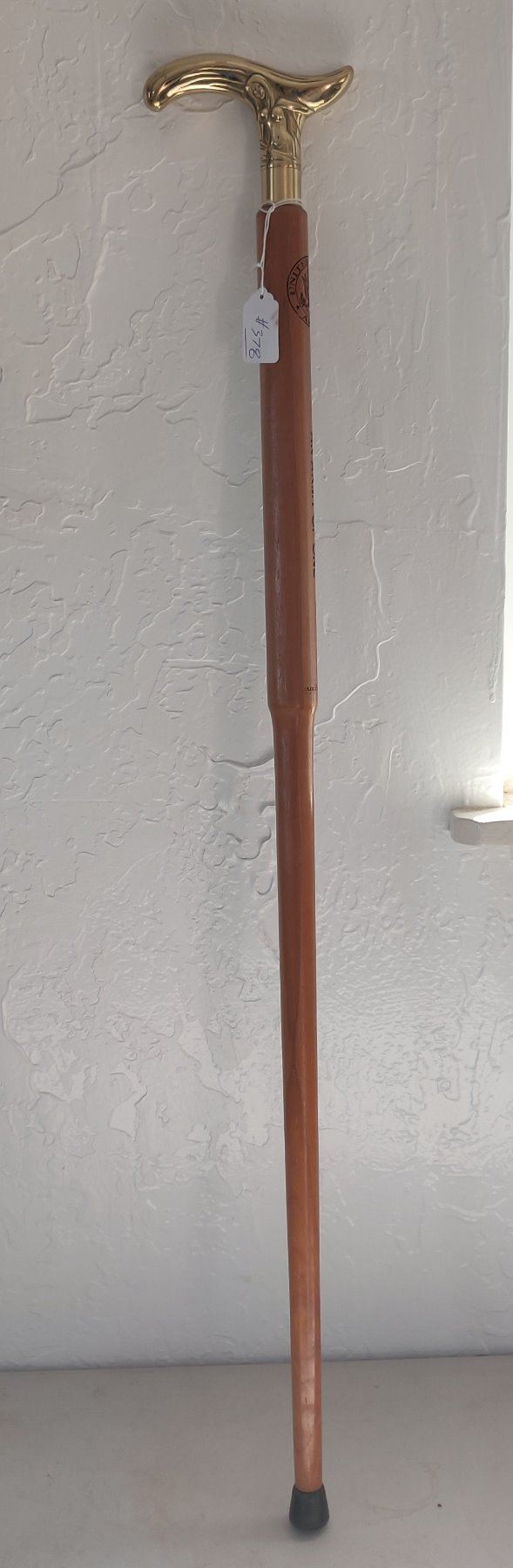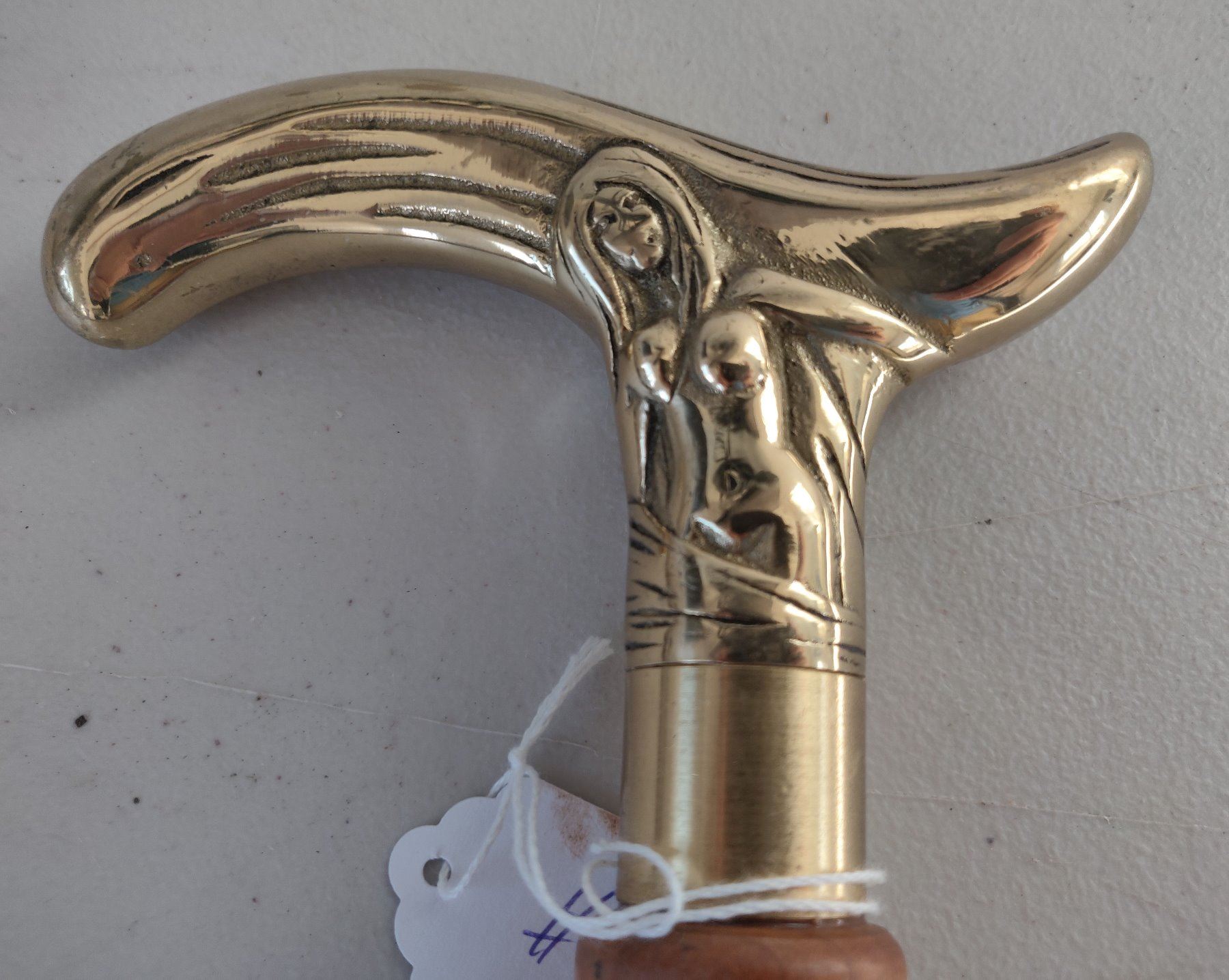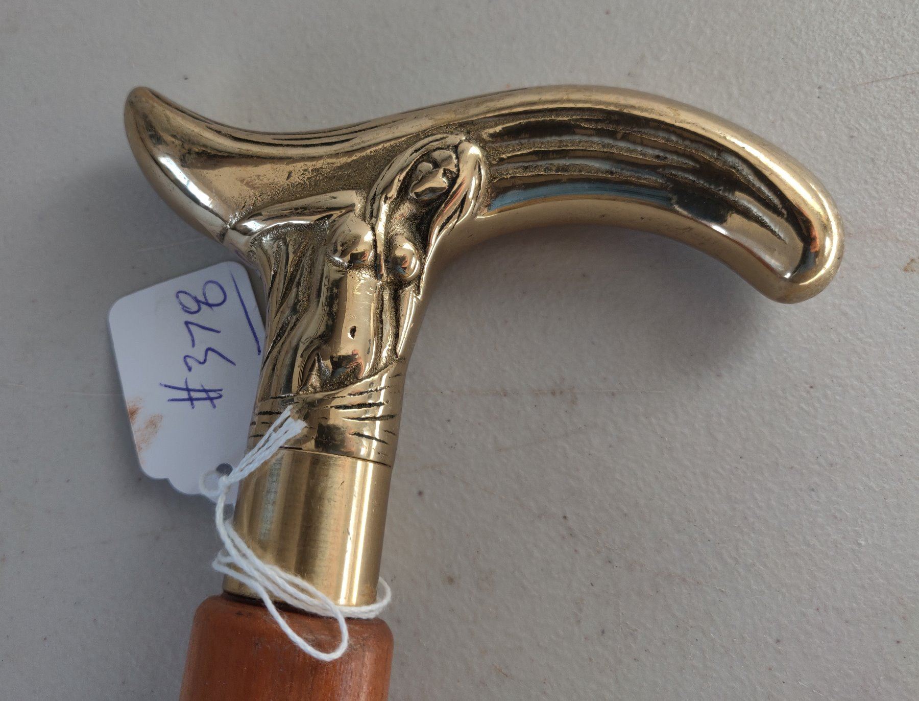 "Army of One" Cane, c. 2000s. Made of brass and wood, the item measures 36" x 5". USA, Olde Master. Bust of woman on handle. Condition: Some wear from use, see images. Shipping: $35.50 USA estimate only, w/insurance and signature, due to length and weight.