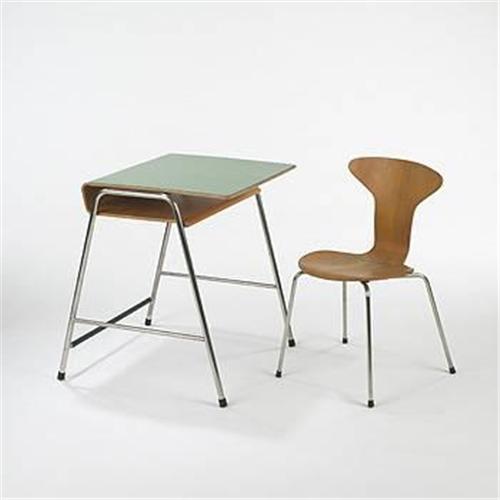 Arne Jacobsen Student's desk and chair from Munkegards School Fritz Hansen Denmark, c. 1952 beech, formica, steel 24.25"w x 23"d x 26.75"h <BR>Literature: Arne Jacobsen, Faber, ppg. 60-73 illustrates this design in situ