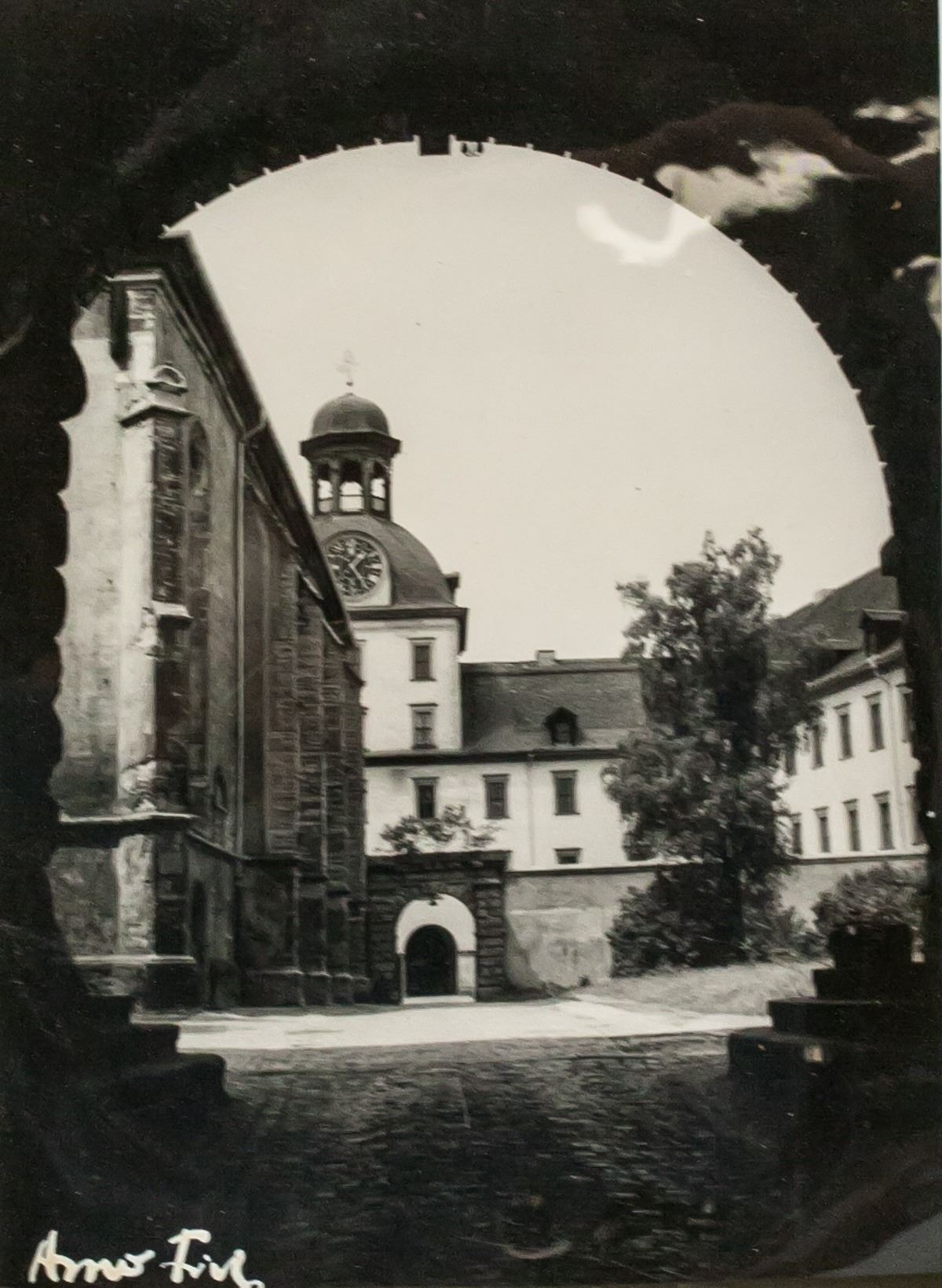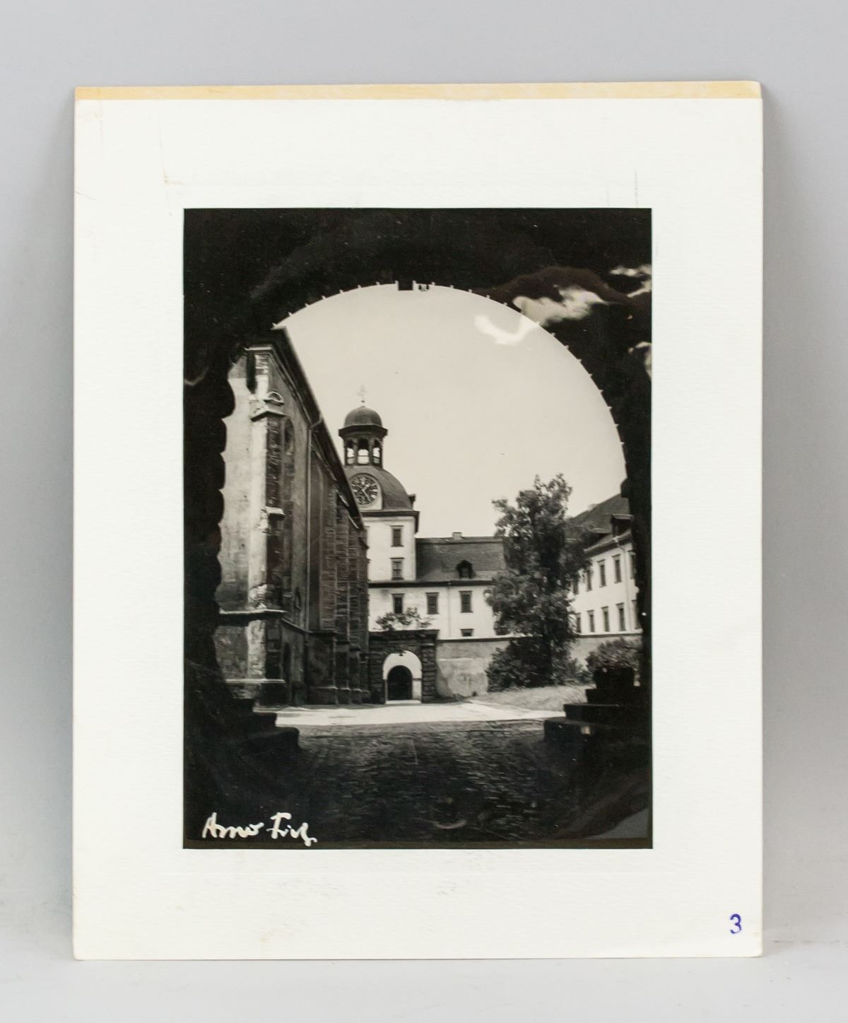 Photograph mounted on matted paper. Featuring clock tower and courtyard scene. Signed Arno Fischer on the lower left corner. Inscribed Arno Fischer 1963 and stamped No N2102 on verso. Attributed to Arno Fischer (1927-2011, German). 24 x 18 cm (9.25 x 7 inches). Matte size: 30 x 24 cm (12 x 9.5 inches). PROVENANCE: This lot carries limited provenance from a Southern Italian estate