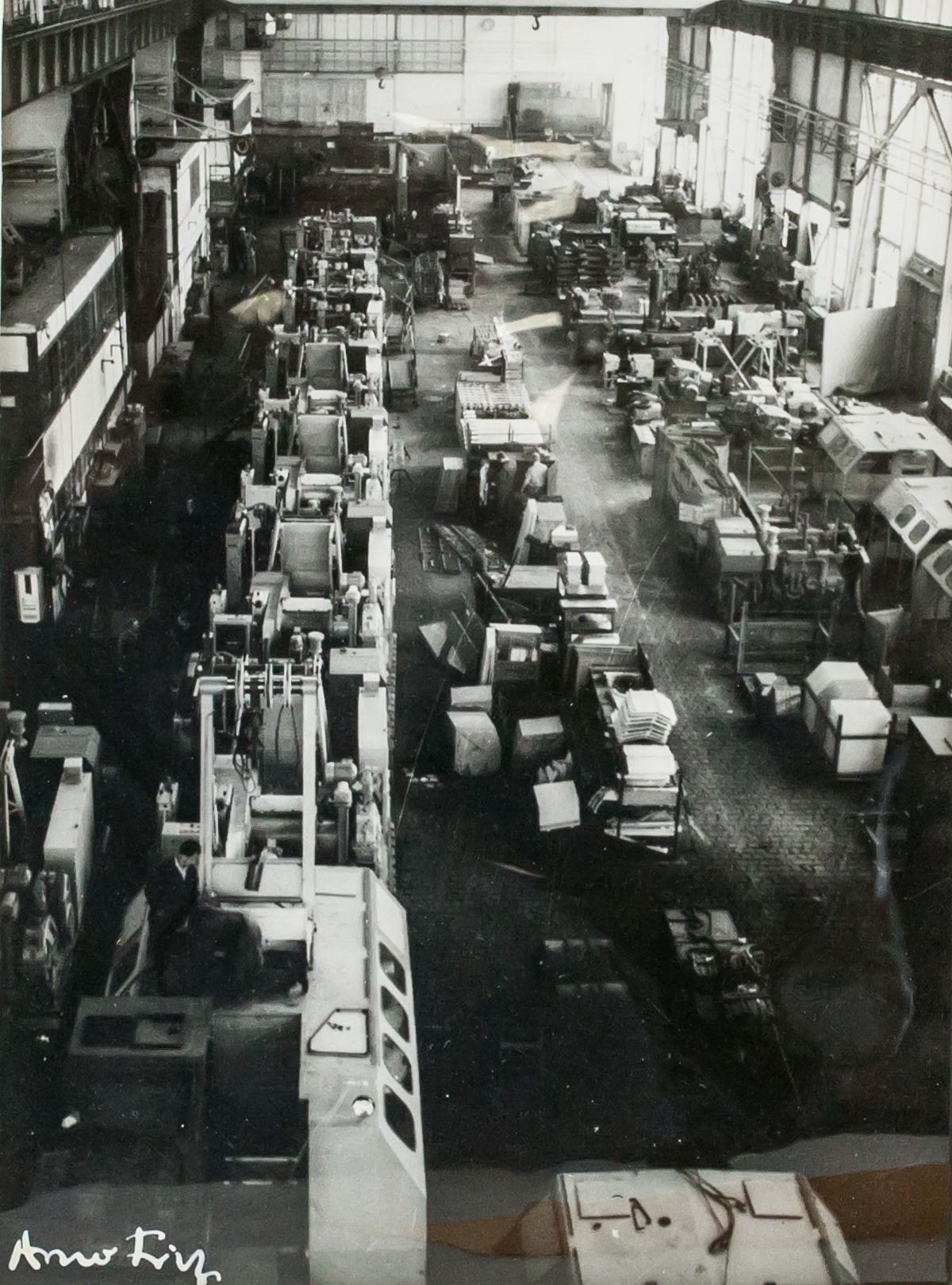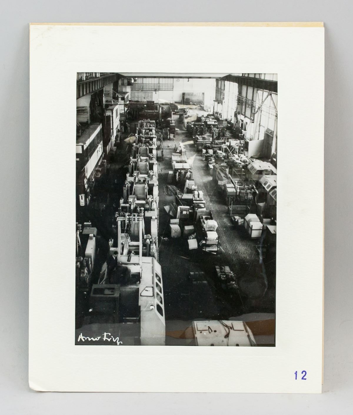 Photograph mounted on matted paper. Featuring an interior scene of factory, Signed Arno Fischer on the lower left corner. Inscribed Arno Fischer 1963 and stamped No 21274 on verso. Attributed to Arno Fischer (1927-2011, German). 24 x 18 cm (9.25 x 7 inches). Matte size: 30 x 24 cm (12 x 9.5 inches). PROVENANCE: This lot carries limited provenance from an Upper New York estate