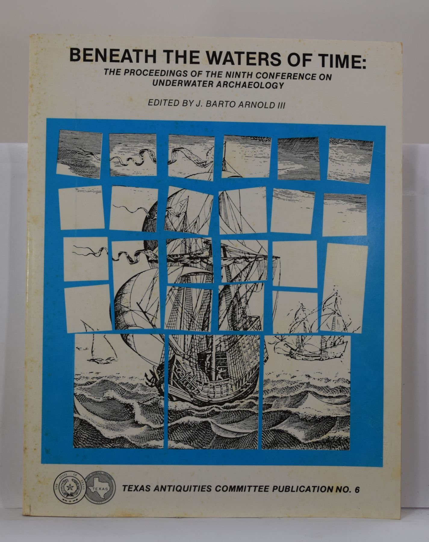 Arnold, J. Barto III (ed.). BENEATH THE WATERS OF TIME: THE PROCEEDINGS OF THE NINTH CONFERENCE ON UNDERWATER ARCHAEOLOGY. Texas Antiquities Committee. 1978. 4to, 244 pages; Softcover; This book covers the proceedings of the 9th conference on underwater archaeology. Some of the many article topics presented in this publication are The Flota Disaster of 1554, Excavation of a Third Century BC shipwreck a La Secca Di Capistello, A Welsh Medieval Cargo Carrier, Search for the USS Queen City, and The Discovery and Excavation of the Royal Yacht Mary. Subject: Archaeology - Underwater