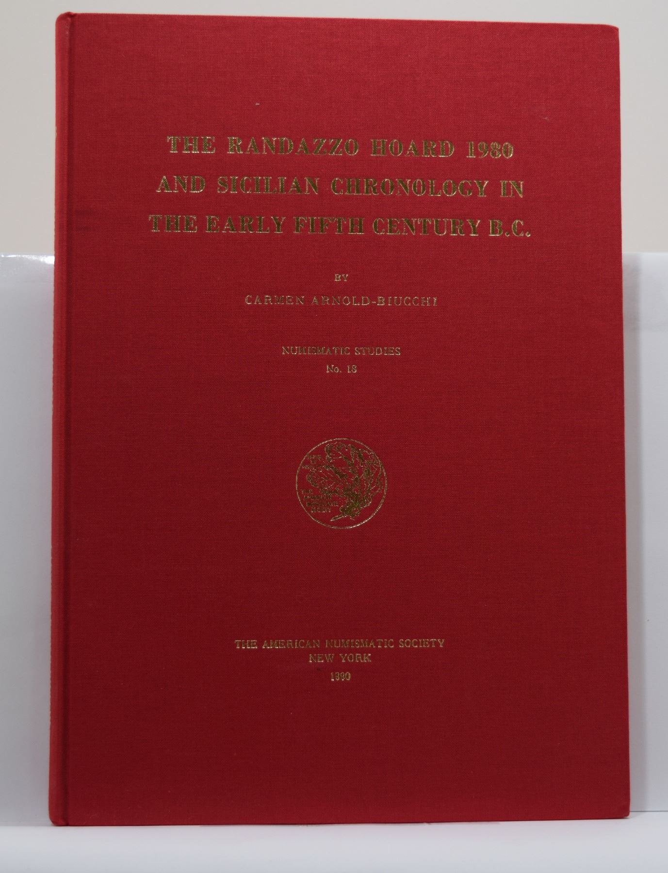 Arnold-Biucchi, Carmen. THE RANDAZZO HOARD 1980 AND SICILIAN CHRONOLOGY IN THE EARLY FIFTH CENTURY B.C. The American Numismatic Society. 1990. 4to, 77 pages; Hardcover; . Subject: Coinage - Ancient Greece