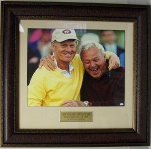 Arnold Palmer and Jack Nicklaus unautographed 16x20 photo. Custom Deluxe Leather Framed and Matted. A great photo of 2 of the best golfers to ever play the game from the World Golf Hall of Fame.