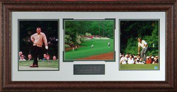 Arnold Palmer is generally regarded as one of the greatest players in the history of men's professional golf. Nicknamed "The King," he is one of golf's most popular stars and its most important trailblazer because he was the first star of the sport's television age, which began in the 1950s. Jack Nicklaus, also known as "The Golden Bear" was continuously ranked as the world's number one golfer on McCormack's World Golf Rankings from its inception in 1968 to 1977. This is an Arnold Palmer and Jack Nicklaus unsigned 3 8x10 Photos from #13 at the Masters. Overall Framed size 38x21, Custom Brown Leather Framed and Matted as shown. A great photo of 2 of the best golfers to ever play the game