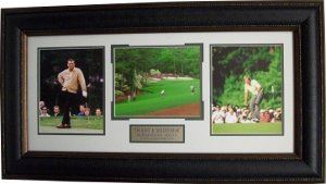 Arnold Palmer is generally regarded as one of the greatest players in the history of men's professional golf. Nicknamed "The King," he is one of golf's most popular stars and its most important trailblazer because he was the first star of the sport's television age, which began in the 1950s. Jack Nicklaus, also known as "The Golden Bear" was continuously ranked as the world's number one golfer on McCormack's World Golf Rankings from its inception in 1968 to 1977. This is an Arnold Palmer and Jack Nicklaus unsigned 3 8x10 Photos from #13 at the Masters. Overall Framed size 38x21, Custom Framed and Matted as shown. A great photo of 2 of the best golfers to ever play the game