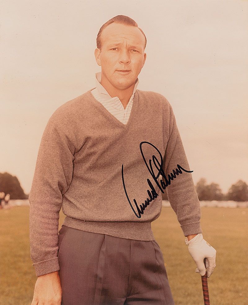 Color glossy 8 x 10 photo of Palmer on the course, signed in black felt tip. In very fine condition.