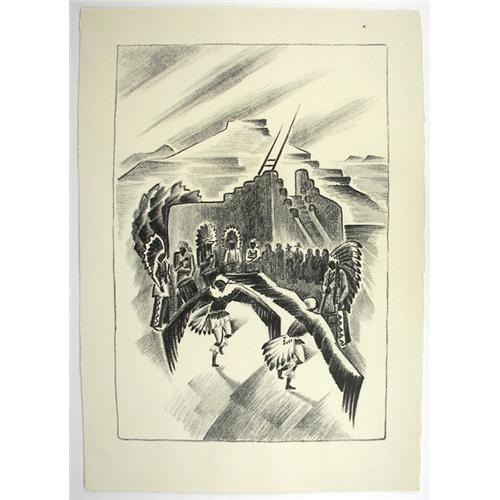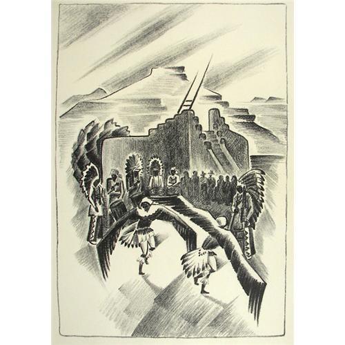 Arnold Ronnebeck (1885-1947) Lithograph, "Eagle Dance San Ildefonso", 1931, image size 12 3/4" x 11 3/8", unsigned, artist's stamp verso
