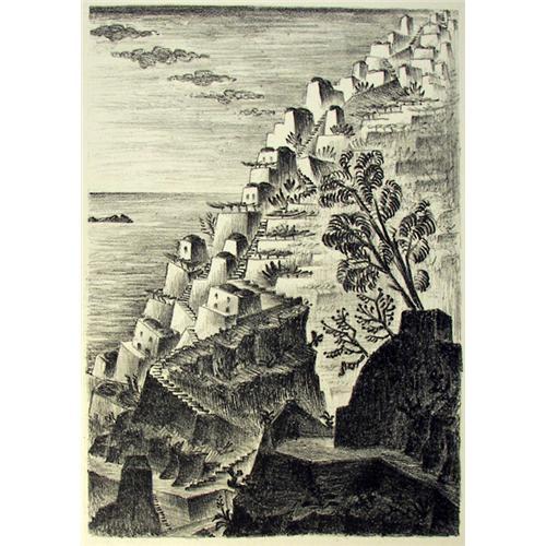 Arnold Ronnebeck (1885-1947) Lithograph, Positano - Italy, image size 10 1/2" x 7 3/8", unsigned, artist's stamp verso, circa 1930s