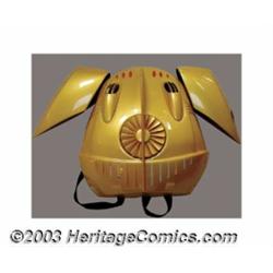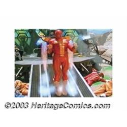 Arnold Schwarzenegger - Screen-Worn Movie Costume from "Jingle All The Way". This handcrafted latex Turbo Man costume is seen throughout this 1996 film, as Schwarzenegger portrays his son's comic book hero come to life. The costume offered here, the only known outfit to include the original worn jet boots, arm gauntlets, high tech gloves, and, most importantly, Turbo Man's incredible special effects jet pack, is the original red spandex bodysuit with handpainted foam body muscle design and custom zip-up closures on the reverse. Other Turbo Man costumes have been offered for sale previously, but none have been as complete as this extraordinary specimen. This outfit was purchased directly from Sothebys Entertainment Rarities auction and includes a letter of authenticity. Additionally, an original "Jingle All The Way" - Turbo Man prop cereal box featuring Schwarzenegger's character, which can be clearly seen in the film, is included with this lot. This Turbo Man outfit is without a doubt the most intricate and highly detailed of any of Schwarzenegger's costumes from any film. Cataloged and guaranteed by Startifacts. Important notice: Heritage usually auctions material at the rate of 200-250 lots per hour. On some occasions eBay Live bid software or the Internet may not be able to keep up with the pace of the auction. We recommend placing a realistic absentee bid now as insurance to avoid disappointment. Occasionally the auctioneer may eliminate or reject an eBay Live bid, and the auctioneer may also reopen a lot after the close of the eBay live bidding (usually because we missed an audience bid), and may reject your bid even if it shows you as the winning bidder. By bidding via eBay Live, you agree that Heritage may award the lot to another bidder at its sole discretion under the circumstances described above or any other reasonable circumstances. Also please note that all Heritage lots purchased through eBay Live carry a 20% Buyer's Premium. Please make sure you read the Terms and Conditions before you bid.