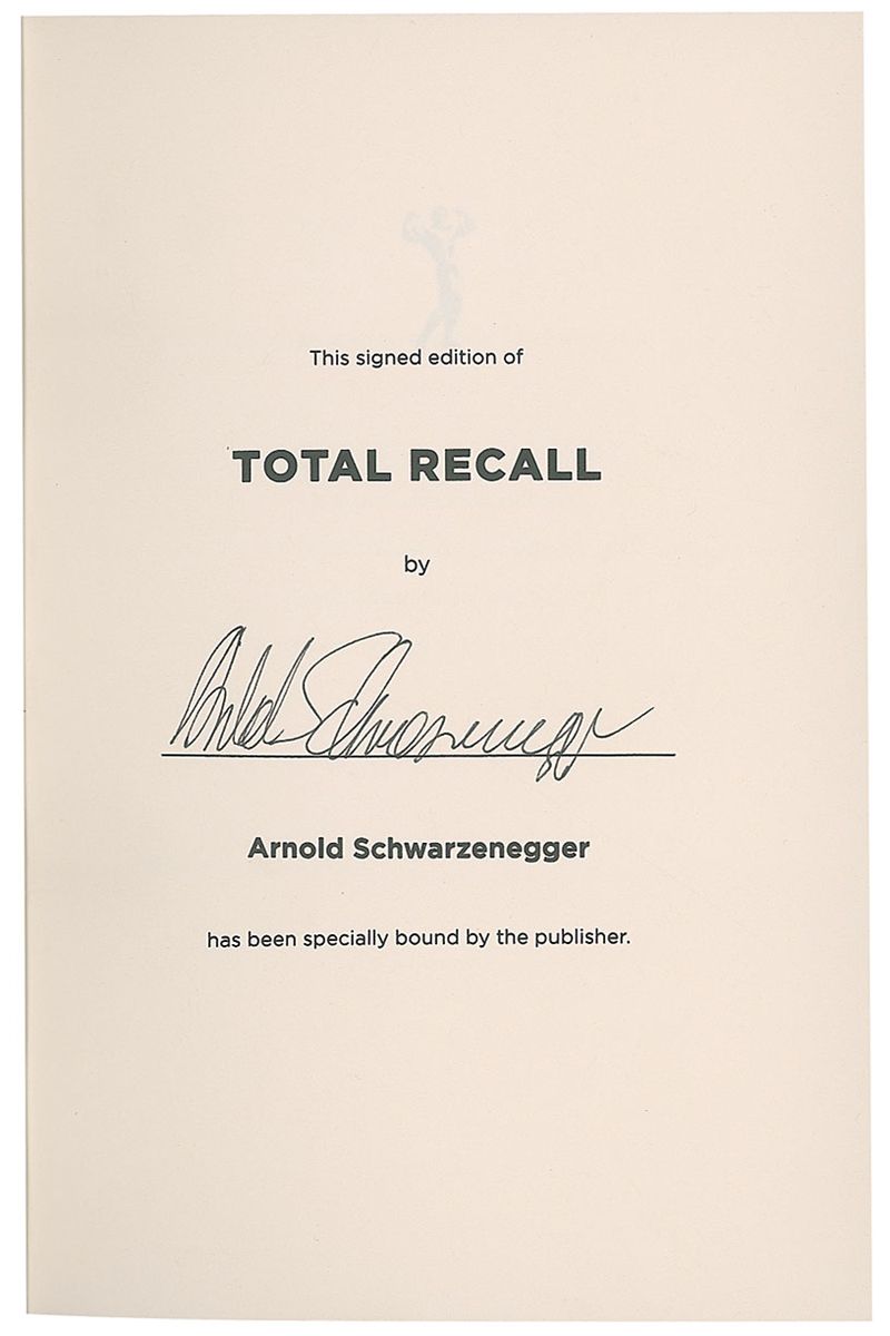 Signed book: Total Recall. First edition, first printing. NY: Simon & Schuster, 2012. Hardcover with dust jacket, 6.5 x 9.5, 646 pages. Signed in black ink on a special prefatory page. In fine condition.