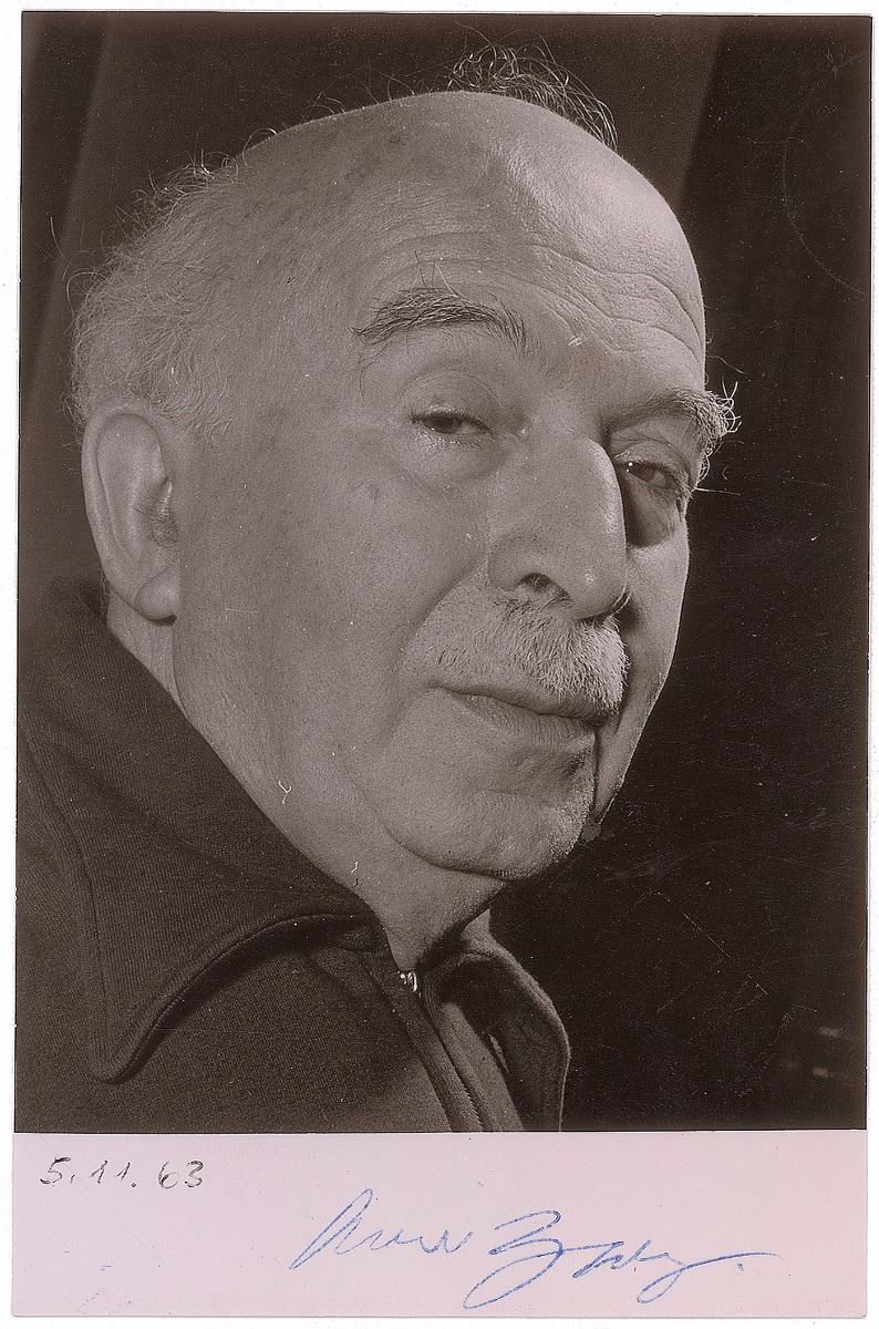 German writer and anti-war and antifascist activist (1887–1968) best known for his six-part cycle on World War I. Glossy 3.75 x 5.75 close-up photo of Zweig, signed in the lower border in blue ballpoint. Collector’s ink notations date the signature to May 11, 1963. In fine condition, with trivial soiling, and some surface impressions to upper right corner.