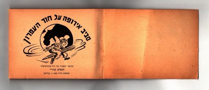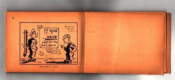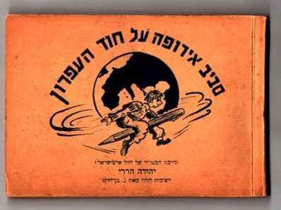 Around Europe on the pencil tip - from the illustrated diary of the Eretz Israeli soldier. Booklet with caricatures of Yehuda Harari and N. Ben Chaim, Jewish soldiers in the British Army during WWII. Printed in Brussels, Hachayal Print, circa 1945. The chapters include: "In Italy", "On the Front" "And We Shall Return Home", and "Saadya Mizrachi in Europe" [Hebrew]. Dimensions: 17x12 cm. Very good condition (slightly worn), a glued tear in page 45.