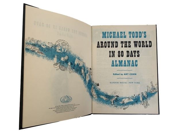 Michael Todd's Around the World in 80 Days Almanac. First Edition, Random House Book. A synopsis of S.J. Perelman's adaptation of Jules Verne's masterpiece. Cameo biographies of 47 stars in the cast. Copyright 1956. Hardcover. In good condition with the exception of peeling of the glossy part of the cover in the back. No creases.