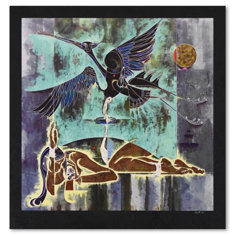 Arouse by Hong, Lu. Please see photos and description for all available information. "Arouse" is a limited edition serigraph on rice paper by Lu Hong, numbered XLVIII/XC and hand signed by the artist. Includes Letter of Authenticity. Measures approx. 34" x 35" (with border), 30" x 30" (image).