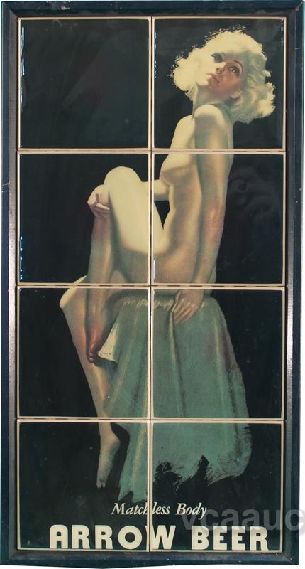 Arrow Beer 8 Tile Sign w/ Nude Woman In Wood Frame - 14"x 26"