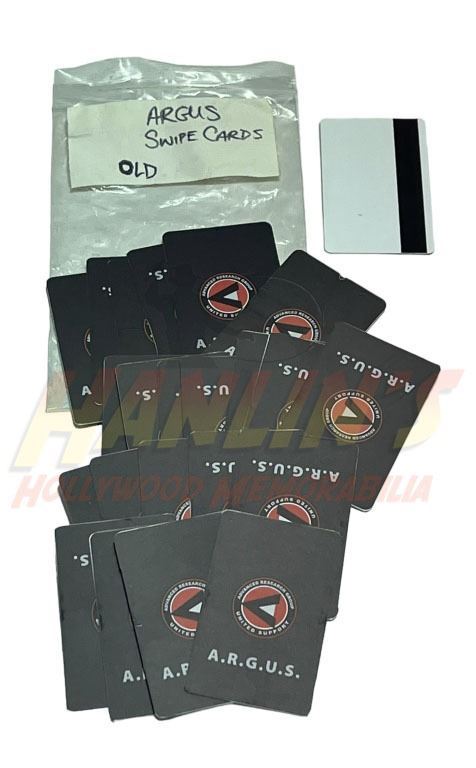 Original large collection of "Argus" swipe cards used in the production of the superhero television series 'Arrow' (2012-2020), follows billionaire playboy Oliver Queen (Stephen Amell), who claimed to have spent five years shipwrecked on Lian Yu, a mysterious island in the North China Sea, before returning home to Starling City (later renamed "Star City") to fight crime and corruption as a secret vigilante whose weapon of choice is a bow and arrow.